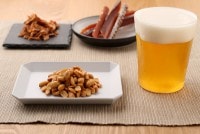 納豆菌を生きたまま加工するために独自の特殊な減圧フライ工法を使用しています。これは密閉した釜の内部を真空にしフライを行う技術で、100℃の低温でフライをする結果、納豆菌を胞子の状態で眠らせて生かしたまま加工しています。おつまみなっとうに使用している大豆は、カナダ産の残留農薬検査をおこなった遺伝子組み換えをしていない大豆を使用しています。中でも極大粒という通常は納豆には使用されず煮豆などに使用される大粒の企画の中で最大のモノをより分けて使用しています。
